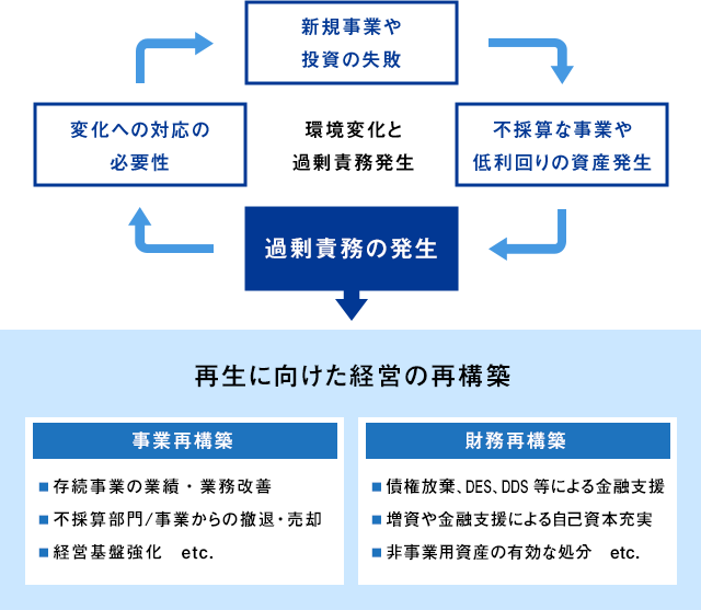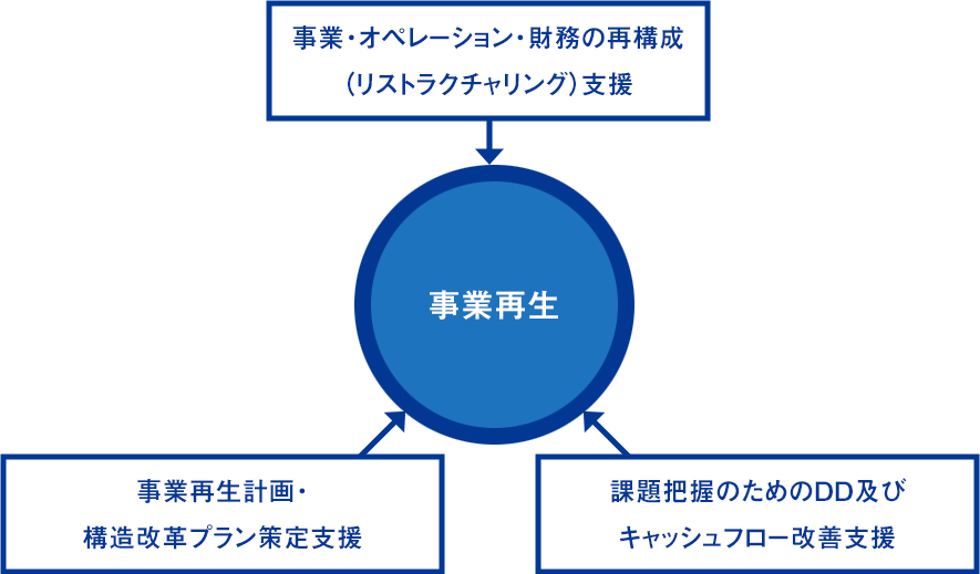 「再生から成長へ」を合言葉に、経営者と共に再出発を支えます。