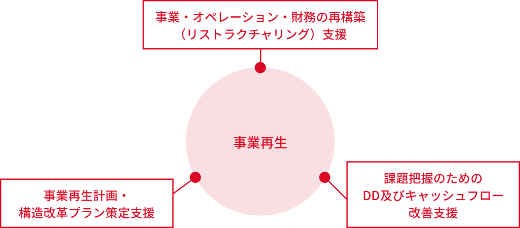 「再生から成長へ」を合言葉に、経営者と共に再出発を支えます。